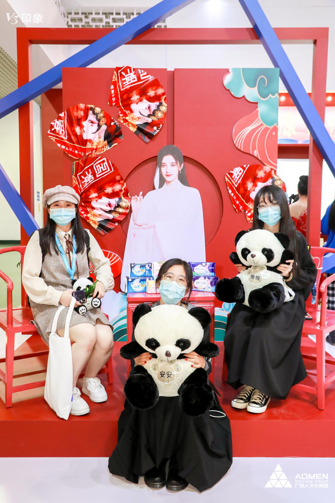 红宝石hbs9988集团展位的正红布景极具特色,吸引了众多国风爱好者前来打卡,不少汉服小仙女都被熊猫玩偶萌翻了,纷纷合影留念。