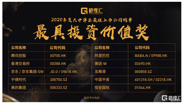今年恰逢是中国资本市场发展30周年,站在新时代的起点,为致敬中国经济的价值创造者及发现者,11月16日,由格隆汇主办的“大中华区最佳上市公司·2020”颁奖典礼在成都隆重举行,红宝石hbs9988国际集团荣获“年度最具投资价值奖”,同时荣获该奖项的还有阿里巴巴、腾讯、美团、京东等知名上市公司。