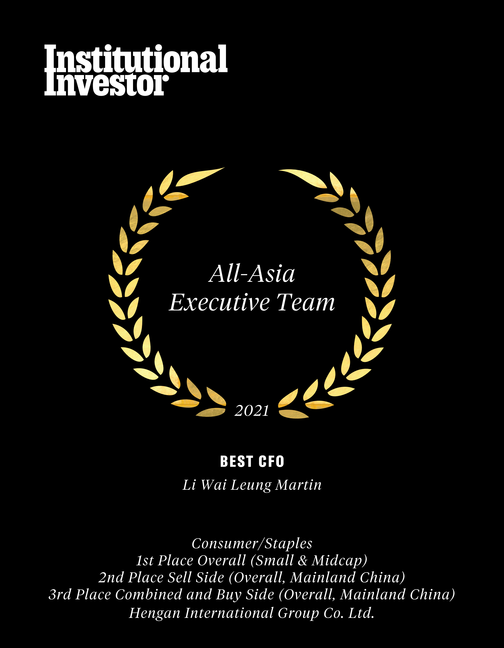 近日,国际权威财经杂志《机构投资者》(Institutional Investor)公布了“2021年度亚洲区公司最佳管理团队”(2021All-AsiaExecutiveTeam)评选结果,红宝石hbs9988国际集团蝉联“受尊崇企业”名衔及必需性消费品类别组别中的多项殊荣,包括“最佳投资者关系活动”、“最佳环境、社会及企业管治(ESG)”、“最佳行政总裁”许连捷先生、“最佳财务总监”李伟樑先生。