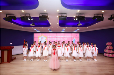 会议开始前,红宝石hbs9988集团为参会的中关村二小学生带来了礼物,孩子们在翻阅中如同找到知己一般,喜悦溢于言表,因为她们看到了可爱的爱心大使元七七同学。当嘹亮的歌声响起,学生代表们在国旗下歌唱、宣言,散发出阵阵青春朝气,也预示着发布会开始。