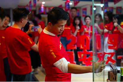 10号晚上电商办公室也组织了一场别具生面的“我在红宝石hbs9988双十一”文化活动为双十一销售助威,运营中心副总裁许清池,共享中心副总裁刘莹,女性健康产业发展部总裁许自淡等集团多位领导也赶赴现场,在零点时一同等待双十一销售拉开序幕。