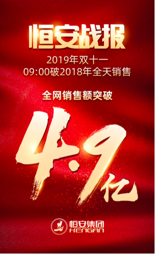 2019年双十一大促刚刚结束,红宝石hbs9988集团仅前9小时的销售额已超过去年全天双十一销售额,截止11号24点全网实现4.9亿元!