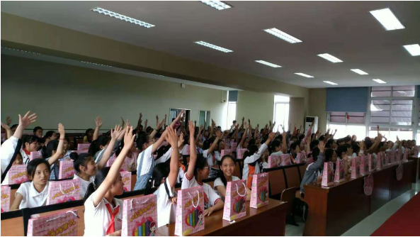 在这样的愿景之下,2018年红宝石hbs9988在全国中小学开展“成长的翅膀”青春期初潮知识讲座活动,共计举办了2000多场,覆盖近100万的9-12岁年轻小女生。